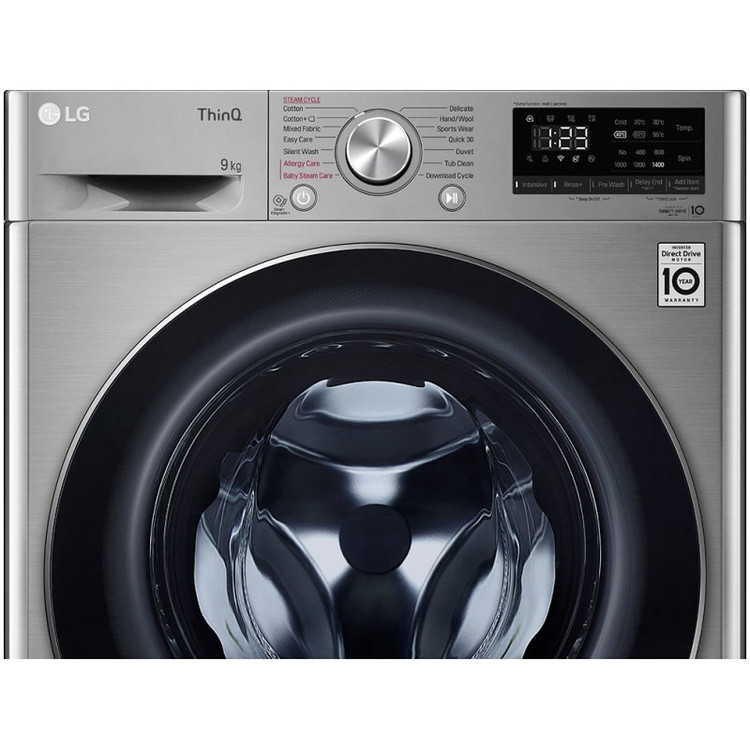 ماشین لباسشویی 9 کیلویی ال جی F4R5VYG2P مجهز به موتور Inverter Direct Drive میباشد. این موتور از نوع روتور خارجی است که مستقیما بدون استفاده از تسمه به دیگ متصل میشود که به این باعث میشود جزو ماشین لباسشوییهای گیربکسی به حساب آید. در نتیجه قطعات مکانیکی کوچک، انرژی کمتری را هدر میدهند و باعث اهش مصرف برق و انرژی میشود. موتورهای دایرکت درایو اینورتر در مقایسه با موتورهای قدیمی و معمولی صدا و لرزش بسیار کمتر و بازدهی بالاتری دارند. در واقع این ساختار ساده به کارکرد بیصدا و قابل اعتماد ماشین لباسشویی کمک میکند. از مزایای دیگر این نوع موتور طول عمر بالای آن میباشد به طوری که ال جی طول عمر مفید آن را تا 10 سال تضمین کرده است که نشان دهنده کیفیت ساخت بالای آن میباشد.