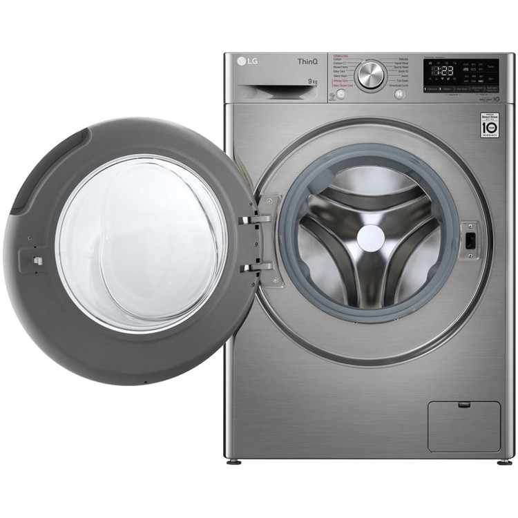 LG Washing Machine F4R5VYG2P به طور یکپارچه در اکوسیستم خانه هوشمند شما ادغام میشود. قابلیت Wi-Fi و سازگاری با LG ThinQ مجموعهای از قابلیتهای هوشمند را ارائه میدهد. دکمه Delay End را به مدت 3 ثانیه فشار داده و نگه دارید تا اتصال دستگاه به برنامه LG ThinQ آغاز شود. از طریق برنامه LG ThinQ به طور یکپارچه به دستگاه متصل شوید و کنترل و نظارت را در دسترس خود داشته باشید. قابلیت Remote Start یا شروع از راه دور به شما این امکان را میدهد که دستگاه را از راه دور از طریق برنامه LG ThinQ کنترل کنید. اتصال در ماشین لباسشویی درب از جلو ال جی مدل F4R5 حرف اول را میزند. تشخیص هوشمند (Smart Diagnosis) به سرعت مشکلات را عیبیابی میکند و راهحلهای سریع ارائه میدهد. در واقع این عملکرد اطلاعات مفیدی را برای تشخیص و حل مشکلات دستگاه بر اساس الگوی استفاده ارائه خواهد داد. با وجود قابلیت راهاندازی مجدد خودکار (Auto Restart) ماشین لباسشویی چرخه شستشو را پس از وصل شدن برق به طور خودکار از سر میگیرد که به صرفهجویی در زمان، انرژی و تلاش کمک میکند. این ویژگی در ماشین لباسشویی به شما امکان میدهد لباسها را سریعتر و با کارایی بیشتر بشویید و مهمتر از آن، تمیزی مناسب را تضمین میکند، بنابراین نیازی به تکرار چرخه شستشو ندارید. این ماشین لباسشویی، قابلیت Delay End برای شروع برنامه شستشو با تاخیر دارد که شما به کمک آن در واقع زمان پایان شستشو را تعیین میکنید. برای فعال کردن قفل کودک دکمههای Delay End و Add Item همزمان به مدت 3 ثانیه فشار داده و نگه دارید تا این عملکرد فعال شود. با فعال شدن این قابلیت صدای بوق شنیده میشود و علامت CL روی صفحه نمایش ظاهر میشود. این قابلیت تمام دکمههای کنترل پنل را به غیر از دکمه پاور را غیر فعال میکند.