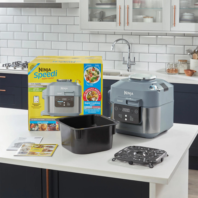 مولتی کوکر نینجا مدل ON401 با طراحی منحصر به فرد و زیبا به رنگ خاکستری جلوه مدرن و جذابی به هر آشپزخانه ای می بخشد. درب این مولتی کوکر به سمت بالا باز می شود و دارای یک قابلمه نچسب با ظرفیت 5.7 لیتر است. ظرفیت بالای محفظه پخت سبب شده بتوانید به آسانی انواع غذاها در حجم زیاد را تهیه کنید و غذاهای متنوع و خوشمزه ای را در مهمانی هایتان سر سفره بگذارید. این مقدار فضا برای پخت مرغ کامل نیز کافی است.