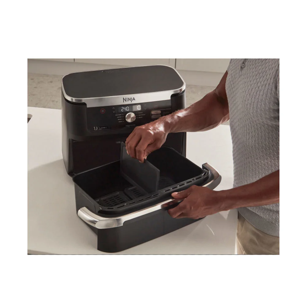 علاوه بر این میتوانید از طریق قراردهی قطعه جداکننده سبد را به دو بخش مساوی 5.2 لیتری تقیسم کرده، پس از اعمال برنامه پخت و تنظیمات دستی دما و زمان برای هر سبد، با همگامسازی (Sync) زمان اتمام آشپزی، وعدهها را بدون تقدم و تاخر در اختیار داشته باشید.