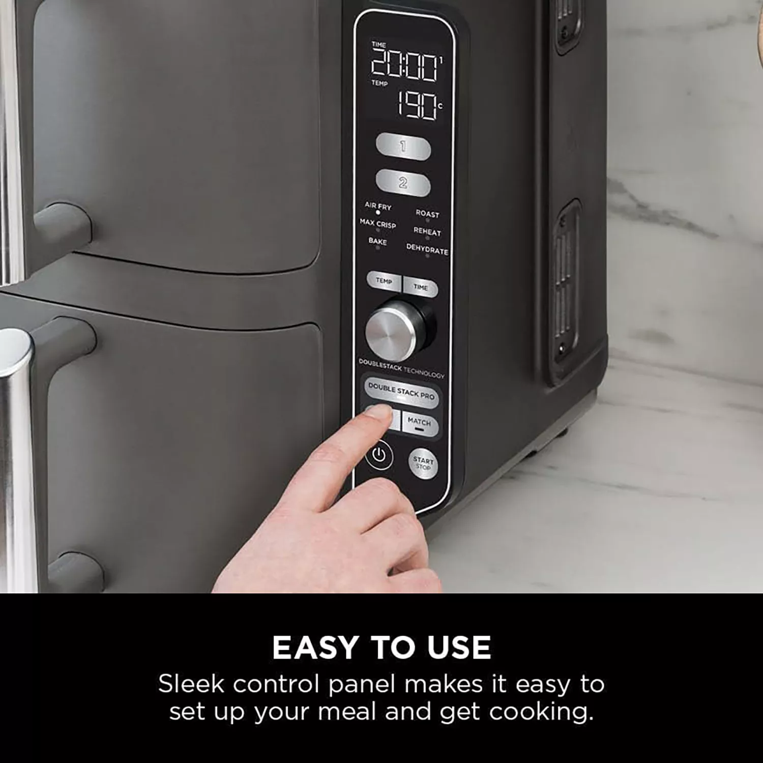 یکی از تفاوت های دیگر سرخ کن نینجا دوطبقه با سایر مدل های سرخ کن دوقلو نوع خاص طراحی کنترل پنل میباشد که بصورت یک نوار عمودی در قسمت کناری مخازن قرار گفته. ولوم چرخشی برای تنظیم برنامه خودکار پخت و همچنین دکمههای مربوطه برای انتخاب مخزن و همچنین امکانات بخصوص پخت با هواپزهای دوقلو در این قسمت قرار دارند.