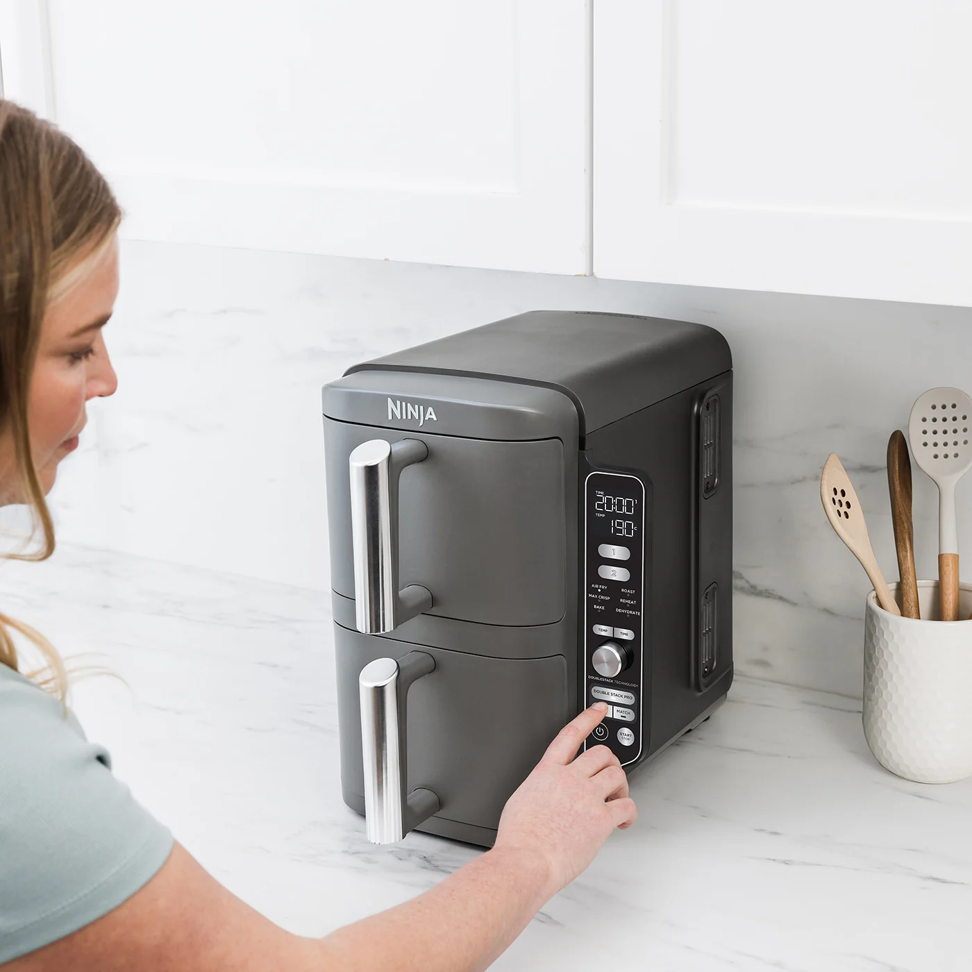 هواپز دوطبقه نینجا یکی از شاهکارهای منحصربه فرد کمپانی نینجا است که همچون دیگر هواپزهای این برند در کشور چین مونتاژ شده و از بالاترین سطح کیفیت و کارایی برخوردار است. استفاده از ترکیب رنگ جذاب خاکستری و نقرهای، جلوهای خاص را به دستگاه بخشیده تا هم از نظر زیبایی و هم کارایی، در جایگاه برتر قرار گیرد. سیستم چرخش هوای هوشمند که در قسمت پشتی مخزنها تعبیه شده، تقریبا مشابه مدلهای گریل باربیکیو این برند میباشد. به عبارت دیگر خبری از المنت های گرمایشی مارپیچی برای گرمادهی نبوده و فرایند پخش گرما بوسیله دریچههای مخصوص بصورت کاملا هوشمندانه صورت میگیرد.