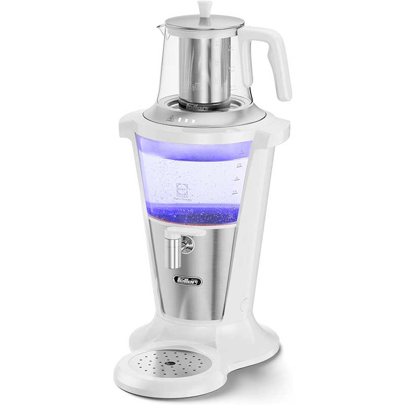 سماور برقی شیشه ای فلر با طراحی زیبا و خوش ساخت جلوه شیکی به آشپزخانه شما می بخشد و بسته به دکوراسیون و سلیقه تان می توانید یکی از دو رنگ مشکی و یا سفید را انتخاب کنید. ظرفیت بالای این سماور و قوری آن را برای خانواده های پرجمعیت و مهمانی ها مناسب کرده است. سماور 3 لیتری و قوری 1 لیتری تجربه لذت بخشی از دم کردن چای و به حداقل رساندن پر کردن مجدد را فراهم می کند.