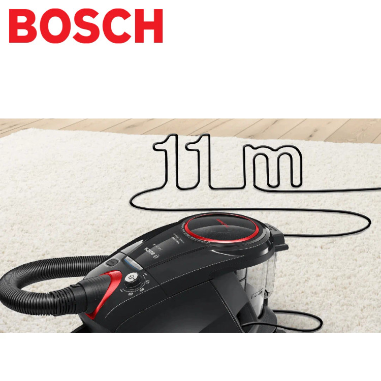 این جاروبرقی بوش با دارا بودن سیم بلند 8 متری به همراه لوله های خرطومی و تلسکوپی شعاع کارکرد 11 متری را ارائه می دهد. بنابراین می توانید محدوده زیادی را بدون نیاز به تعویض مدام پریز به راحتی تمیز جارو بکشید.