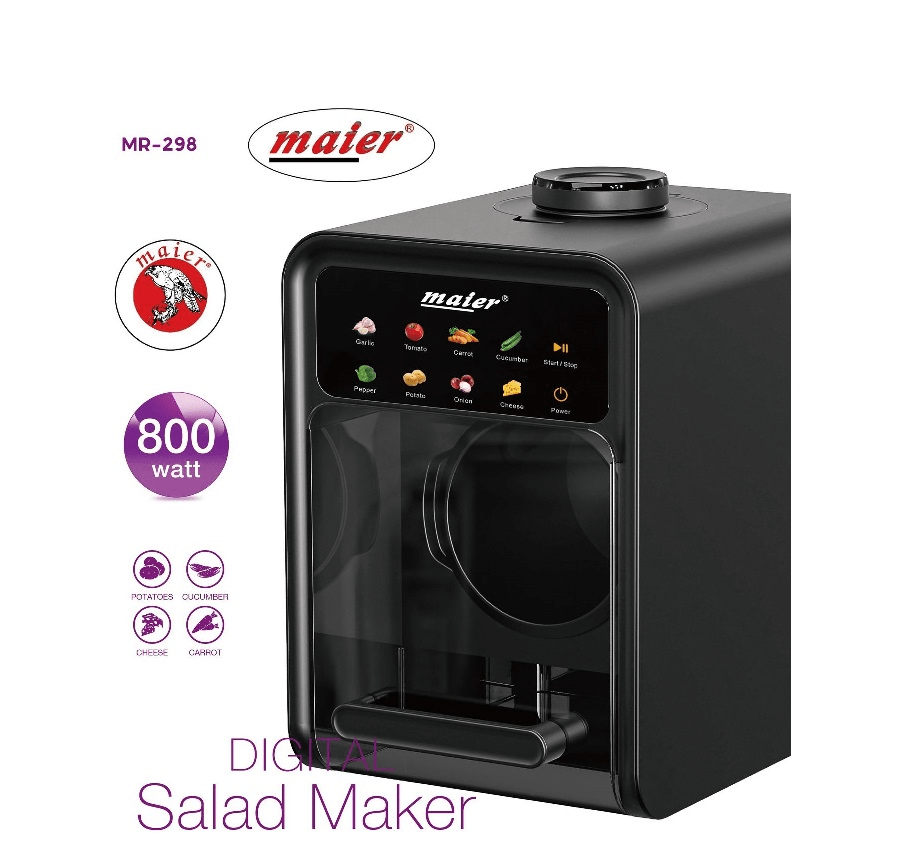 این وسیله ی برقی با توان مصرفی ۸۰۰ وات قدرت بالایی در خرد کردن انواع مواد غذایی دارد. این محصول دارای ۸ تیغه از جنس استیل ضد زنگ است که مواد غذایی را در ۸ نوع و مدل متفاوت رنده میکند. این سالاد ساز دارای پنل لمسی کاربری دیجیتال برای اعمال تنظیمات دستگاه و انتخاب نوع مواد غذایی است.