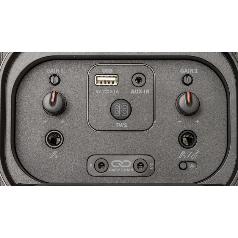 این پارتی باکس برای علاقهمندان به موسیقی زنده و کارائوکه طراحی شده است. وجود ورودیهای مجزا برای میکروفون و گیتار به شما این امکان را میدهد تا به راحتی به اجرا بپردازید. علاوه بر این، غلتکهای تنظیم صدای Bass، Treble و Echo روی پنل، امکان کنترل حرفهای صدا را در لحظه فراهم میکنند.