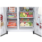 یخچال فریزر ال جی GR-X267CSHS محصولی پر از عملکردهای پیشرفته است که خروجی آب را با اشعه ماوراء بنفش استریل میکند. این یخچال که عضو خانواده ساید بای ساید ال جی قرار دارد در سال 2022 از خط تولید این کمپانی عبور کرده است. این محصول در بازار به عنوان یخچال فریزر ال جی X267 شناخته میشود اما ممکن است با مدلهای مشابه که با این عنوان عرضه میشوند اشتباه گرفته شود پس در هنگام خرید دقت لازم را به عمل آورید که محصول درست و دقیق را خریداری نمایید. این یخچال فریزر با مدل کامل (مدل نامبر) GR-X267CSHS و کد محصول (Product Code) GC-X257CSHS معرفی شده است که در واقع کد محصول این مدل شاسی مادر محسوب میشود. با جستجو یخچال فریزر GC-X257CSHS میتوانید سایت اصلی ال جی را پیدا کنید که تمام مشخصات آن با یخچال فریزر GR-X267CSHS یکی است. در حال حاضر مونتاژ چین این محصول در بازار ما موجود میباشد. یخچال فریزر ساید بای ساید ال جی X267 دارای ظرفیت کل 674 لیتر یا 24 فوت است و برای یک خانواده با جمعیت متوسط بسیار مناسب میباشد. البته احتمال دارد محصول فوق در فروشگاههای دیگر با عنوان یخچال فریزر 28 فوت یا 30 فوت نیز معرفی شود، اما صرفا تبلیغاتی است. البته ظرفیت واقعی یا قابل استفاده این یخچال فریزر در واقع 598 لیتر میباشد که شامل 406 لیتر در بخش یخچال و 192 لیتر در بخش فریزر است.