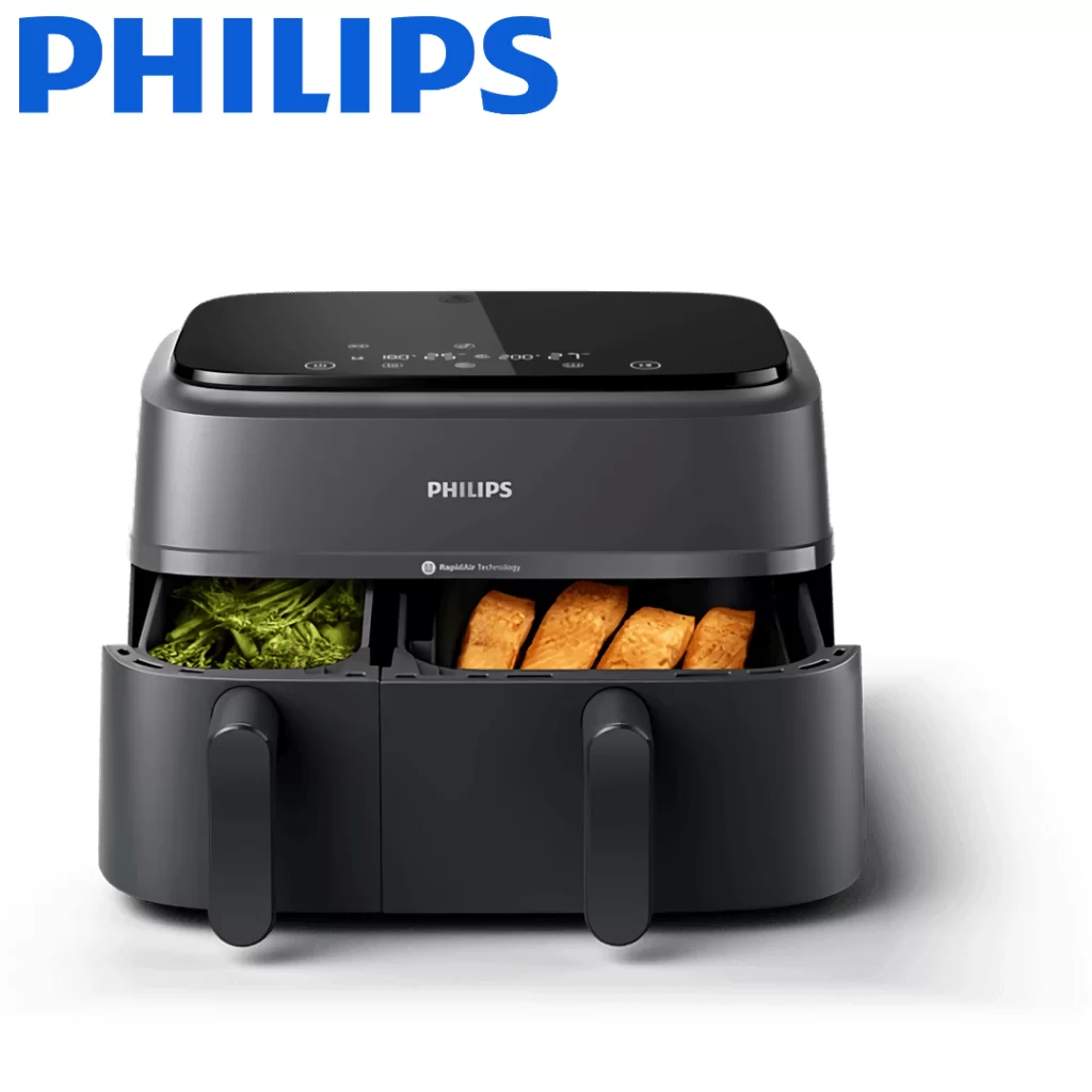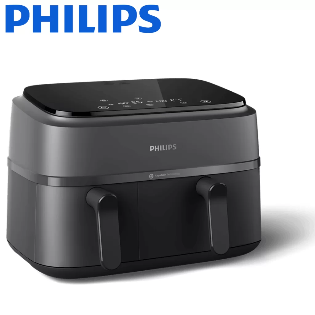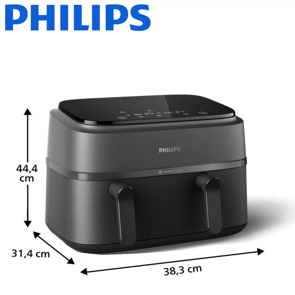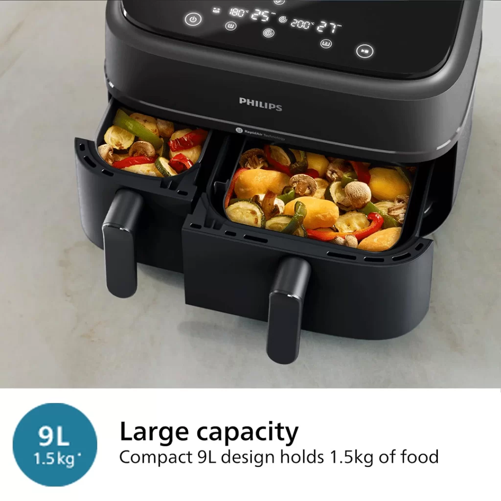ظرفیت کاسه های سرخ کن دوقلو فیلیپس 6 و 3 لیتر است که در مجموع ظرفیتی معادل 9 لیتر را در اختیار شما قرار میدهد.