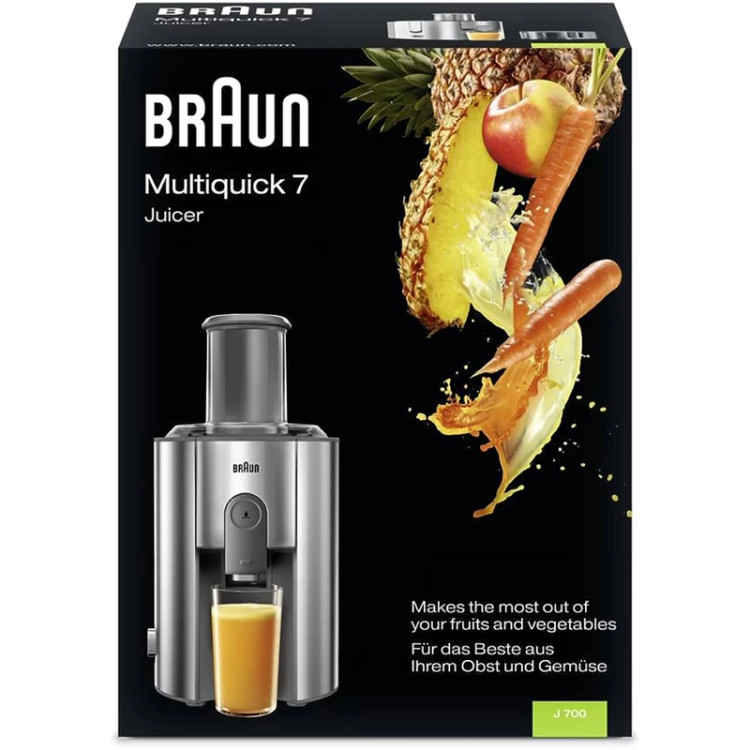 آبمیوه گیری براون مدل J700 یک دستگاه تک منظوره جهت تهیه آبمیوه با قدرت بسیار بالا بوده که دارای ظاهری بسیار شیک و به رنگ استیل می باشد. این دستگاه توسط شرکت براون آلمان طراحی شده و جهت مونتاژ در چین ساخته می شود.