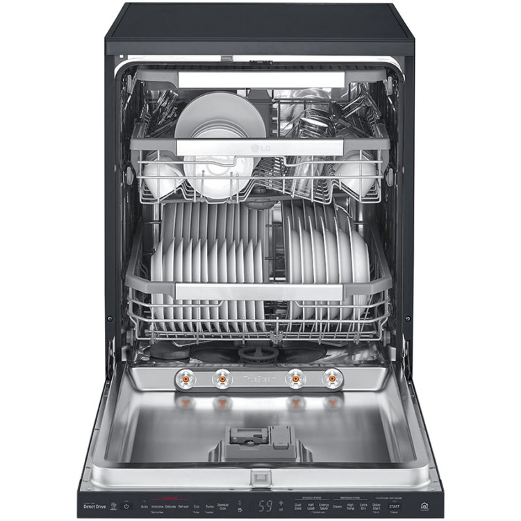 - سیستم Water Softener برای کاهش سختی آبدارای 3 چراغ نشانگر برای نمایش وضعیت دستگاه (SignaLight)دارای قابلیت Machine Clean Reminder جهت یادآوری تمیز کردن دستگاه پشتیبانی از برنامه LG ThinQ برای کنترل و مدیریت ماشین ظرفشویی از طریق موبایل (مخصوص موبایل های اندرویدی و iOS)سیستم Aqua-Stop برای جلوگیری از نشت آبتکنولوژی Condensing برای خشک کردن ظروف به کمک هوای داغ حاصل از دور آخر آبکشی و فنسیستم Vario Washing System شدت شستشو را در طبقه تنظیم می کندبرنامه شستشوی Machine Clean برای شستشو و تمیز کردن خودکار داخل ماشین ظرفشویی سیستم EasyRack Plus برای تنظیم طبقات یا سبد های ماشین ظرفشویی قابلیت Energy Saver برای صرفه جویی در مصرف انرژی دارای نگهدارنده مخصوص لیوان های پایه دار (Stemware Holder)طراحی کاملا مینیمال برای هماهنگی هر چه بهتر با آشپزخانه شماجنس بدنه فولاد ضد زنگ (Stainless Steel)دارای قیف (Funnel) برای پر کردن مخزن نمک ماشین ظرفشویی استفاده از مواد ضد باکتری در ساخت برخی از اجزا ماشین ظرفشویی (Anti-Bacterial Treatment)کنترل کاملا الکترونیکی (Fully Electronic Control)دارای 3 بازوی آبپاش (Top, Upper, Lower Spray Arms)دارای چرخه Refresh یا تازه سازی برای رفع گرد و غبار روی ظروف (شستشوی بدون مواد شوینده)دارای پنل کنترلی مخفی (Hidden Panel Control)تضمین عملکرد و کارایی موتور Inverter Direct Drive تا 10 سال توسط ال جیقابلیت High temp برای شستشو با آب داغدارای صفحه نمایش سگمنتی از نوع میکرو ال ای دی (Micro LED)سیستم Vario Plus برای شستشوی بهتر ظروف به کمک بازوی وسط دارای نماد پر کردن مجدد نمک (Salt Refill Icon)تکنولوژی TrueSteam برای شستشو و خشک کردن کامل ظروف قابلیت Dual Zone برای شستشوی ظروف ظریف و ظروف بزرگ به طور هم زمان قابلیت تنظیم ارتفاع طبقات یا سبد ها در 3 سطح مختلف دارای 4 نوار نویزگیر (Noise Strip) با قابلیت نصب برای کاهش انتقال لرزش و صدای ماشین ظرفشویی قابلیت Adjustable Leg برای تنظیم پایه ها تا 30 میلیمترپشتیبانی از اینترنت اشیا (IoT) برای مدیریت و کنترل ماشین ظرفشویی از راه دورسیستم Smart Diagnosis برای عیب یابی هوشمندقابلیت Auto Open Dry برای باز شدن خودکار درب بعد از اتمام شستشو و خشک کردن بهتر ظروف قابلیت Control Lock برای قفل کردن پنل کنترلی ماشین ظرفشویی دارای سنسور تشخیص میزان کثیفی آب و ظروف (Soil Sensor)دارای قابلیت تاشو (Foldable Tines) دندانه های سبد برای جایگیری ظروف بزرگ تردارای موتور Inverter Direct Drive با طول عمر بالا و صرفه جویی در مصرف انرژی و زمان هنگام شستشوقابلیت Extra Dry برای خشک کردن بهتر ظروف دارای چرخه Intensive برای شستشوی ظروف بسیار کثیف مجهز به قابلیت Delay Start برای شروع شستشو با تاخیرمحفظه داخلی ماشین ظرفشویی از جنس فولاد ضد زنگ با دوام (NeveRust Stainless Steel)تکنولوژی QuadWash برای شستشوی بهتر ظروف با استفاده از بازوی آبپاش 4 پره قابلیت شروع شستشو با تاخیر از 1 تا 12 ساعت دارای مبدل حرارتی مخفی (Hidden Heater)