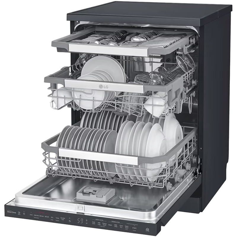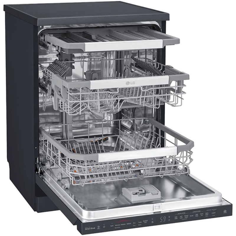 - سیستم Water Softener برای کاهش سختی آبدارای 3 چراغ نشانگر برای نمایش وضعیت دستگاه (SignaLight)دارای قابلیت Machine Clean Reminder جهت یادآوری تمیز کردن دستگاه پشتیبانی از برنامه LG ThinQ برای کنترل و مدیریت ماشین ظرفشویی از طریق موبایل (مخصوص موبایل های اندرویدی و iOS)سیستم Aqua-Stop برای جلوگیری از نشت آبتکنولوژی Condensing برای خشک کردن ظروف به کمک هوای داغ حاصل از دور آخر آبکشی و فنسیستم Vario Washing System شدت شستشو را در طبقه تنظیم می کندبرنامه شستشوی Machine Clean برای شستشو و تمیز کردن خودکار داخل ماشین ظرفشویی سیستم EasyRack Plus برای تنظیم طبقات یا سبد های ماشین ظرفشویی قابلیت Energy Saver برای صرفه جویی در مصرف انرژی دارای نگهدارنده مخصوص لیوان های پایه دار (Stemware Holder)طراحی کاملا مینیمال برای هماهنگی هر چه بهتر با آشپزخانه شماجنس بدنه فولاد ضد زنگ (Stainless Steel)دارای قیف (Funnel) برای پر کردن مخزن نمک ماشین ظرفشویی استفاده از مواد ضد باکتری در ساخت برخی از اجزا ماشین ظرفشویی (Anti-Bacterial Treatment)کنترل کاملا الکترونیکی (Fully Electronic Control)دارای 3 بازوی آبپاش (Top, Upper, Lower Spray Arms)دارای چرخه Refresh یا تازه سازی برای رفع گرد و غبار روی ظروف (شستشوی بدون مواد شوینده)دارای پنل کنترلی مخفی (Hidden Panel Control)تضمین عملکرد و کارایی موتور Inverter Direct Drive تا 10 سال توسط ال جیقابلیت High temp برای شستشو با آب داغدارای صفحه نمایش سگمنتی از نوع میکرو ال ای دی (Micro LED)سیستم Vario Plus برای شستشوی بهتر ظروف به کمک بازوی وسط دارای نماد پر کردن مجدد نمک (Salt Refill Icon)تکنولوژی TrueSteam برای شستشو و خشک کردن کامل ظروف قابلیت Dual Zone برای شستشوی ظروف ظریف و ظروف بزرگ به طور هم زمان قابلیت تنظیم ارتفاع طبقات یا سبد ها در 3 سطح مختلف دارای 4 نوار نویزگیر (Noise Strip) با قابلیت نصب برای کاهش انتقال لرزش و صدای ماشین ظرفشویی قابلیت Adjustable Leg برای تنظیم پایه ها تا 30 میلیمترپشتیبانی از اینترنت اشیا (IoT) برای مدیریت و کنترل ماشین ظرفشویی از راه دورسیستم Smart Diagnosis برای عیب یابی هوشمندقابلیت Auto Open Dry برای باز شدن خودکار درب بعد از اتمام شستشو و خشک کردن بهتر ظروف قابلیت Control Lock برای قفل کردن پنل کنترلی ماشین ظرفشویی دارای سنسور تشخیص میزان کثیفی آب و ظروف (Soil Sensor)دارای قابلیت تاشو (Foldable Tines) دندانه های سبد برای جایگیری ظروف بزرگ تردارای موتور Inverter Direct Drive با طول عمر بالا و صرفه جویی در مصرف انرژی و زمان هنگام شستشوقابلیت Extra Dry برای خشک کردن بهتر ظروف دارای چرخه Intensive برای شستشوی ظروف بسیار کثیف مجهز به قابلیت Delay Start برای شروع شستشو با تاخیرمحفظه داخلی ماشین ظرفشویی از جنس فولاد ضد زنگ با دوام (NeveRust Stainless Steel)تکنولوژی QuadWash برای شستشوی بهتر ظروف با استفاده از بازوی آبپاش 4 پره قابلیت شروع شستشو با تاخیر از 1 تا 12 ساعت دارای مبدل حرارتی مخفی (Hidden Heater)