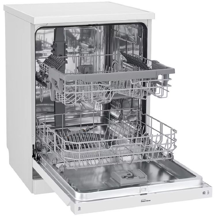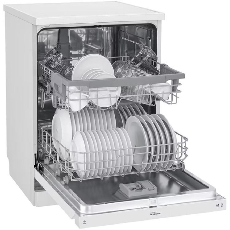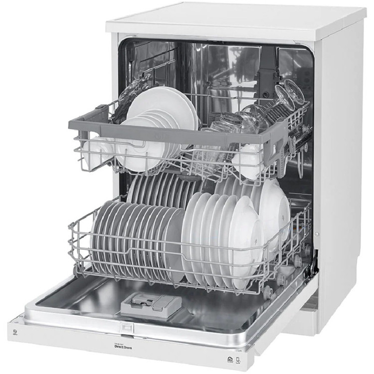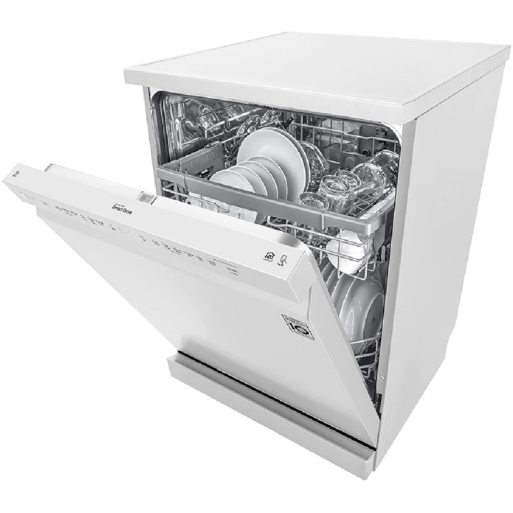 ماشین ظرفشویی ال جی DFB512FW نه تنها فضای کافی و طیف گستردهای از برنامههای شستشو را برای شستن ظروف با هر شکل و اندازهای ارائه میدهد، بلکه طراحی شیک و زیبایی را به آشپزخانه شما میبخشد. این محصول به عنوان ماشین ظرفشویی ال جی DFB512 و یا 512 نیز ممکن است در بازار معرفی شود که مدل کامل آن نیست. بنابراین بهتر است در هنگام خرید به مدل کامل آن که روی برچسب محصول درج شده است توجه نمایید. این محصول با مدل کامل ظرفشویی ال جی DFB512FW رنگ سفید و مونتاژ و ساخت کره وارد بازار شده است. همراه با موتور Inverter Direct Drive ال جی، سکوت جدیدی را در یک ماشین ظرفشویی تجربه کنید! این موتور مصرف انرژی پایینی دارد و در حین شستشو صدای بسیار کمی تولید مینماید. بنابر گفته ال جی حداقل صدای تولید شده از این دستگاه 46 دسیبل میباشد. این دستگاه با ظرفیت 14 نفره طراحی شده است که آن را برای خانوادههای متوسط تا بزرگ به گزینهای مناسب تبدیل میکند.