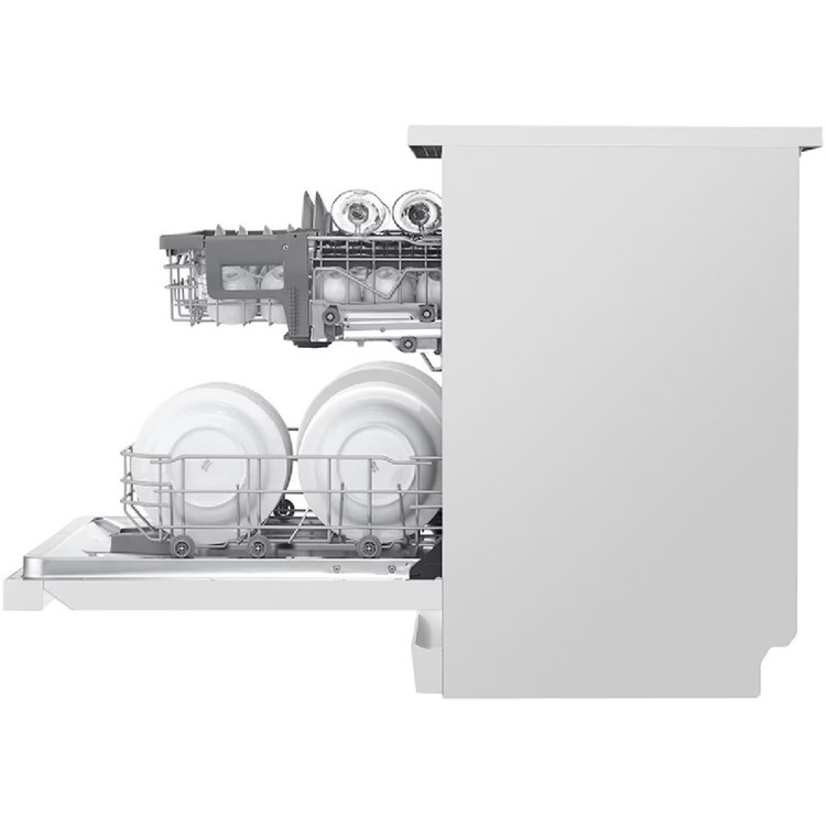 - تکنولوژی QuadWash برای شستشوی بهتر ظروف با استفاده از بازوی آبپاش 4 پره قابلیت Dual Zone برای شستشوی ظروف ظریف و ظروف بزرگ به طور هم زمان شستشوی توربو (Turbo Cycle) در 59 دقیقه برنامه شستشوی Machine Care برای شستشو و تمیز کردن خودکار داخل ماشین ظرفشویی دارای چرخه Intensive برای شستشوی ظروف بسیار کثیف دارای قابلیت Machine Clean Reminder جهت یادآوری تمیز کردن دستگاهسیستم Smart Diagnosis برای عیب یابی هوشمندسیستم Aqua-Stop برای جلوگیری از نشت آبدارای سنسور تشخیص میزان کثیفی آب و ظروف (Soil Sensor)دارای موتور Inverter Direct Drive با طول عمر بالا و صرفه جویی در مصرف انرژی و زمان هنگام شستشوقابلیت Extra Dry برای خشک کردن بهتر ظروف طراحی کاملا مینیمال برای هماهنگی هر چه بهتر با آشپزخانه شماسیستم Water Softener برای کاهش سختی آبتکنولوژی Detergent detection برای صرفه جویی و تنظیم خودکار میزان استفاده از مواد شوینده قابلیت شروع شستشو با تاخیر از 1 تا 12 ساعت شستشوی سریع (Express Cycle) در 38 دقیقه قابلیت Control Lock برای قفل کردن پنل کنترلی ماشین ظرفشویی دارای قیف (Funnel) برای پر کردن مخزن نمک ماشین ظرفشویی پشتیبانی از برنامه LG ThinQ برای کنترل و مدیریت ماشین ظرفشویی از طریق موبایل (مخصوص موبایل های اندرویدی و iOS)قابلیت High temp برای شستشو با آب داغ مجهز به قابلیت Delay Start برای شروع شستشو با تاخیرمحفظه داخلی ماشین ظرفشویی از جنس فولاد ضد زنگ با دوام (NeveRust Stainless Steel)سیستم Vario Washing System شدت شستشو را در طبقه تنظیم می کندسیستم EasyRack Plus برای تنظیم طبقات یا سبد های ماشین ظرفشویی قابلیت Energy Saver برای صرفه جویی در مصرف انرژی قابلیت Adjustable Leg برای تنظیم پایه ها تا 30 میلیمتردارای سبد کوچک Vario Basket یا Cutlery Basket مخصوص کارد، قاشق و چنگال دارای نماد پر کردن مجدد نمک (Salt Refill Icon)استفاده از مواد ضد باکتری در ساخت برخی از اجزا ماشین ظرفشویی (Anti-Bacterial Treatment)دارای نگهدارنده مخصوص لیوان های پایه دار (Stemware Holder)دارای 3 بازوی آبپاش (Top, Upper, Lower Spray Arms)دارای 1 نوار نویزگیر (Noise Strip) با قابلیت نصب برای کاهش انتقال لرزش و صدای ماشین ظرفشویی تضمین عملکرد و کارایی موتور Inverter Direct Drive تا 10 سال توسط ال جی قابلیت Half Load برای شستشوی ظروف با نصف ظرفیت برنامه Delicate برای شستشوی ظروف ظریف و شیشهای جنس بدنه فولاد ضد زنگ (Stainless Steel)سیستم SenseClean میزان کثیفی ظروف را تشخیص می دهد و شستشو را به صورت خودکار تنظیم میکند