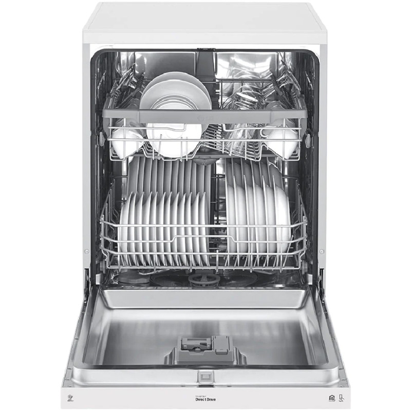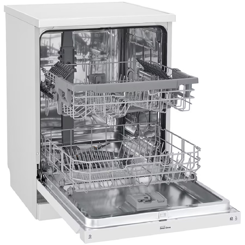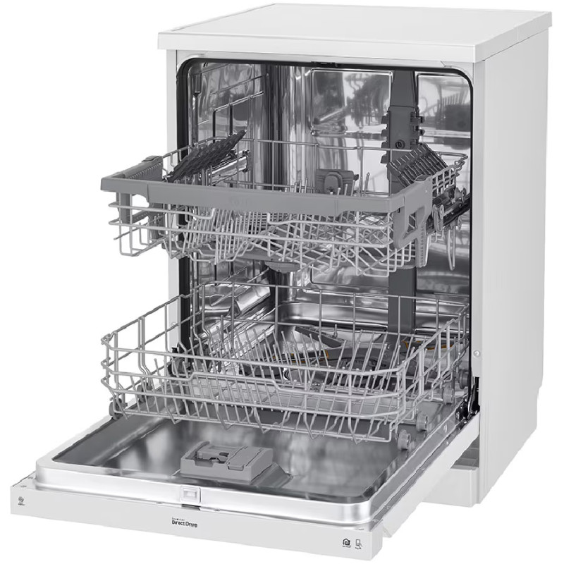 - تکنولوژی QuadWash برای شستشوی بهتر ظروف با استفاده از بازوی آبپاش 4 پره قابلیت Dual Zone برای شستشوی ظروف ظریف و ظروف بزرگ به طور هم زمان شستشوی توربو (Turbo Cycle) در 59 دقیقه برنامه شستشوی Machine Care برای شستشو و تمیز کردن خودکار داخل ماشین ظرفشویی دارای چرخه Intensive برای شستشوی ظروف بسیار کثیف دارای قابلیت Machine Clean Reminder جهت یادآوری تمیز کردن دستگاهسیستم Smart Diagnosis برای عیب یابی هوشمندسیستم Aqua-Stop برای جلوگیری از نشت آبدارای سنسور تشخیص میزان کثیفی آب و ظروف (Soil Sensor)دارای موتور Inverter Direct Drive با طول عمر بالا و صرفه جویی در مصرف انرژی و زمان هنگام شستشوقابلیت Extra Dry برای خشک کردن بهتر ظروف طراحی کاملا مینیمال برای هماهنگی هر چه بهتر با آشپزخانه شماسیستم Water Softener برای کاهش سختی آبتکنولوژی Detergent detection برای صرفه جویی و تنظیم خودکار میزان استفاده از مواد شوینده قابلیت شروع شستشو با تاخیر از 1 تا 12 ساعت شستشوی سریع (Express Cycle) در 38 دقیقه قابلیت Control Lock برای قفل کردن پنل کنترلی ماشین ظرفشویی دارای قیف (Funnel) برای پر کردن مخزن نمک ماشین ظرفشویی پشتیبانی از برنامه LG ThinQ برای کنترل و مدیریت ماشین ظرفشویی از طریق موبایل (مخصوص موبایل های اندرویدی و iOS)قابلیت High temp برای شستشو با آب داغ مجهز به قابلیت Delay Start برای شروع شستشو با تاخیرمحفظه داخلی ماشین ظرفشویی از جنس فولاد ضد زنگ با دوام (NeveRust Stainless Steel)سیستم Vario Washing System شدت شستشو را در طبقه تنظیم می کندسیستم EasyRack Plus برای تنظیم طبقات یا سبد های ماشین ظرفشویی قابلیت Energy Saver برای صرفه جویی در مصرف انرژی قابلیت Adjustable Leg برای تنظیم پایه ها تا 30 میلیمتردارای سبد کوچک Vario Basket یا Cutlery Basket مخصوص کارد، قاشق و چنگال دارای نماد پر کردن مجدد نمک (Salt Refill Icon)استفاده از مواد ضد باکتری در ساخت برخی از اجزا ماشین ظرفشویی (Anti-Bacterial Treatment)دارای نگهدارنده مخصوص لیوان های پایه دار (Stemware Holder)دارای 3 بازوی آبپاش (Top, Upper, Lower Spray Arms)دارای 1 نوار نویزگیر (Noise Strip) با قابلیت نصب برای کاهش انتقال لرزش و صدای ماشین ظرفشویی تضمین عملکرد و کارایی موتور Inverter Direct Drive تا 10 سال توسط ال جی قابلیت Half Load برای شستشوی ظروف با نصف ظرفیت برنامه Delicate برای شستشوی ظروف ظریف و شیشهای جنس بدنه فولاد ضد زنگ (Stainless Steel)سیستم SenseClean میزان کثیفی ظروف را تشخیص می دهد و شستشو را به صورت خودکار تنظیم میکند